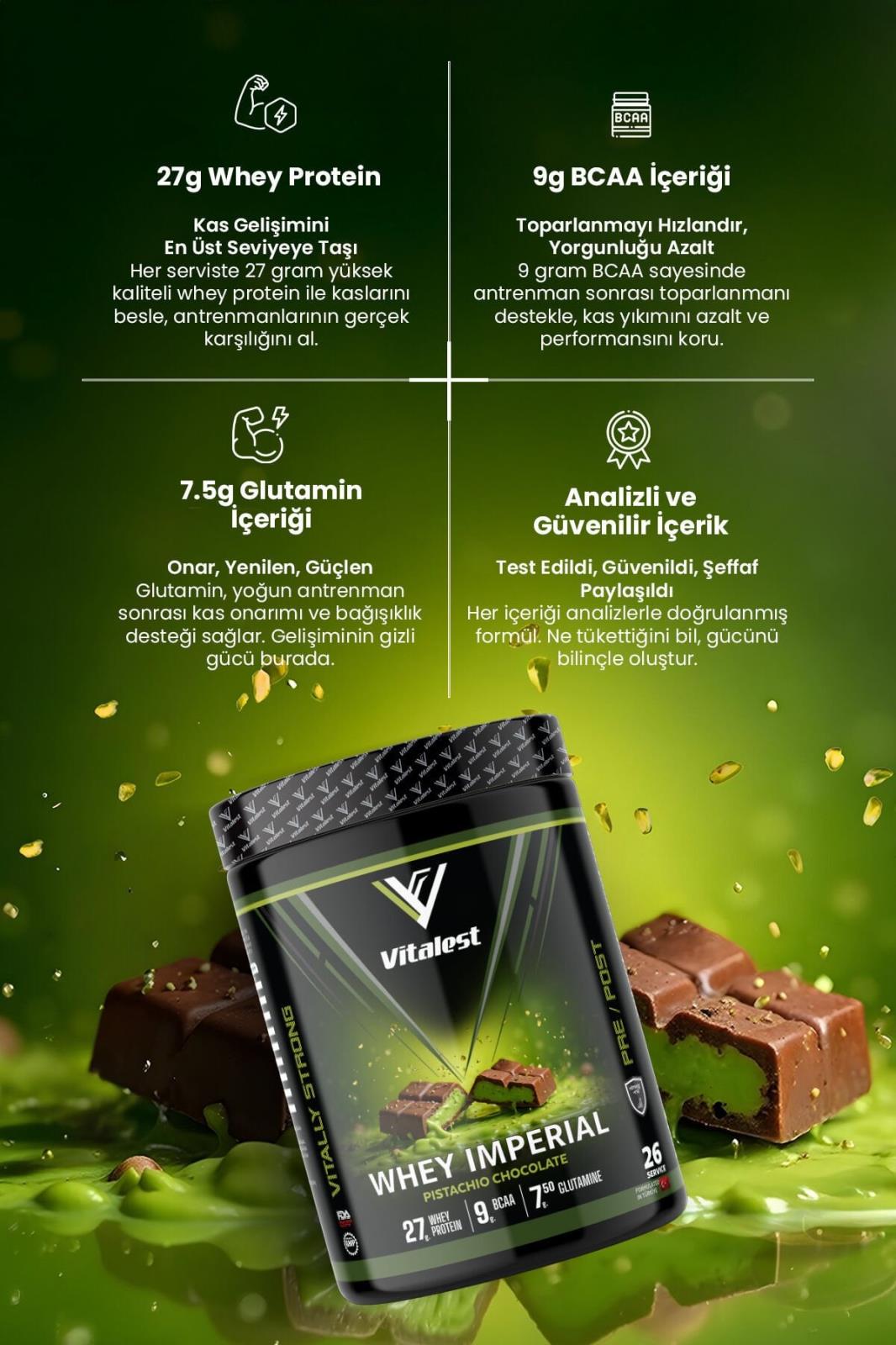 Whey Imperial 988G. Protein Tozu 26 Servis Fıstıklı Çikolata Özellikleri