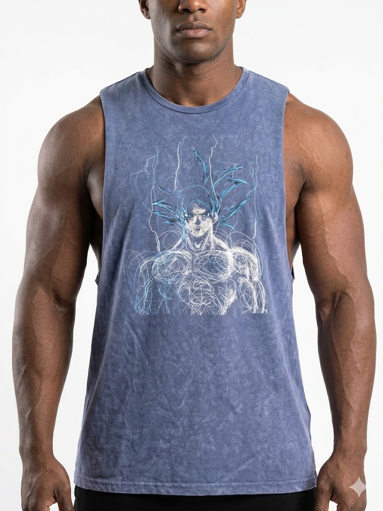Kolsuz Yıkamalı Beast Mode Mavi Atlet
